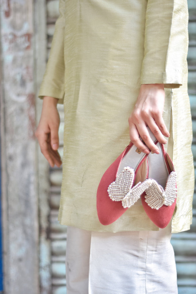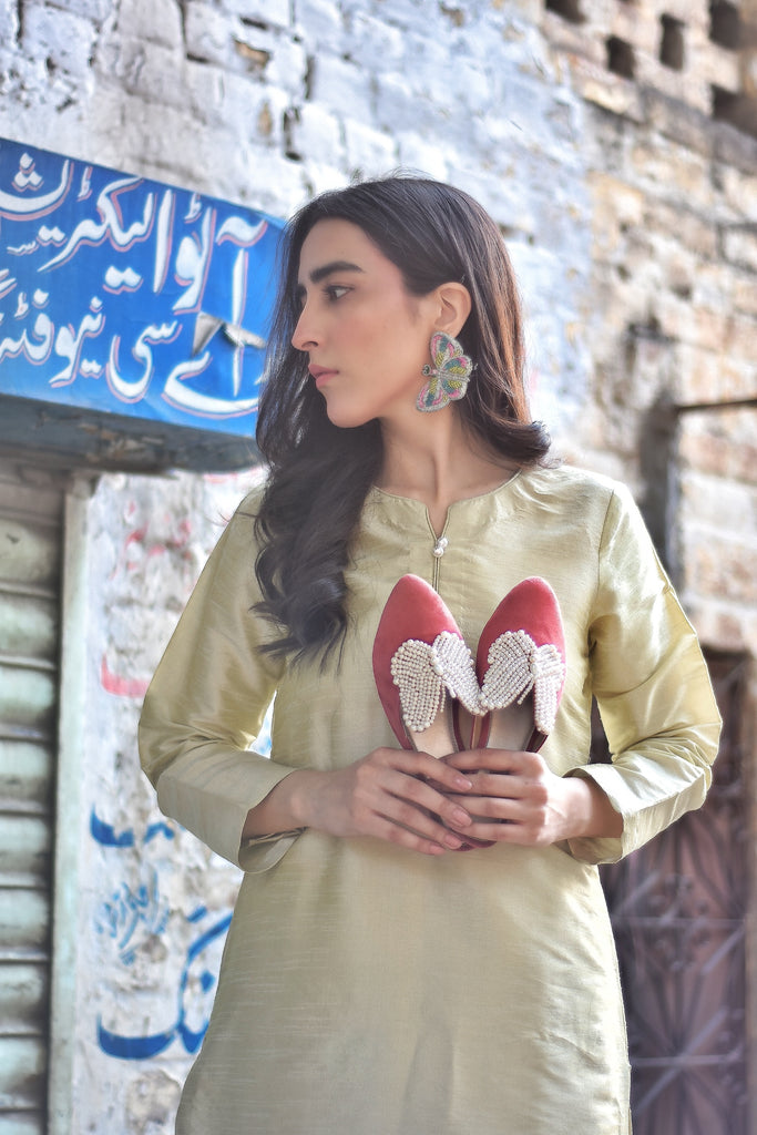 - Hand Embroidered with off-white pearls in a combination of different sizes to make this gorgeous Butterfly